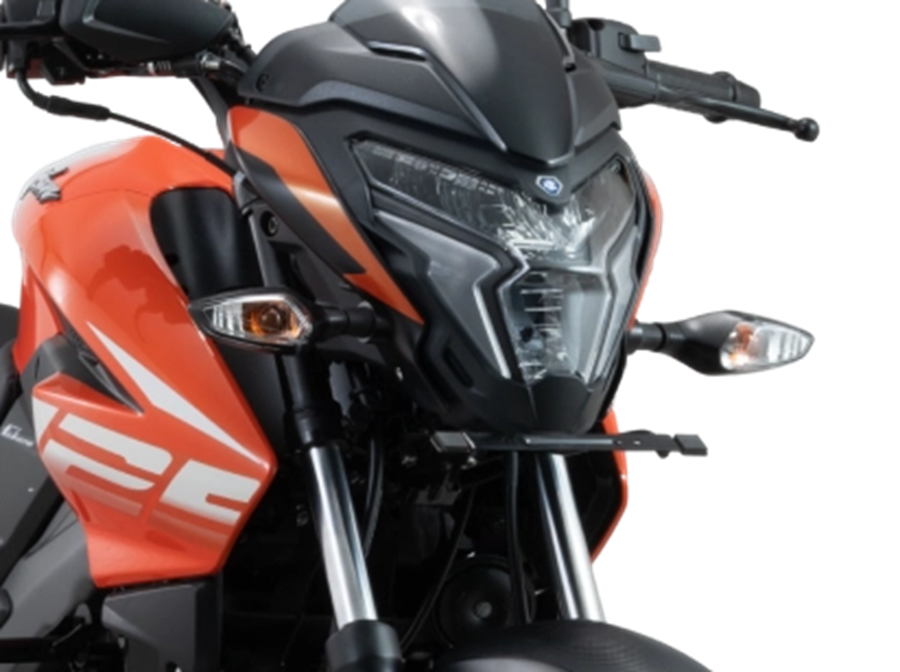 Perfect balance and comfort on any road with a 5-step monoshock suspension and beefed-up perimeter frame. Single channel ABS combination with a 240 mm front petal disc brake and a 130 mm rear drum brake makes Pulsar NS125 an absolute thrill machine.